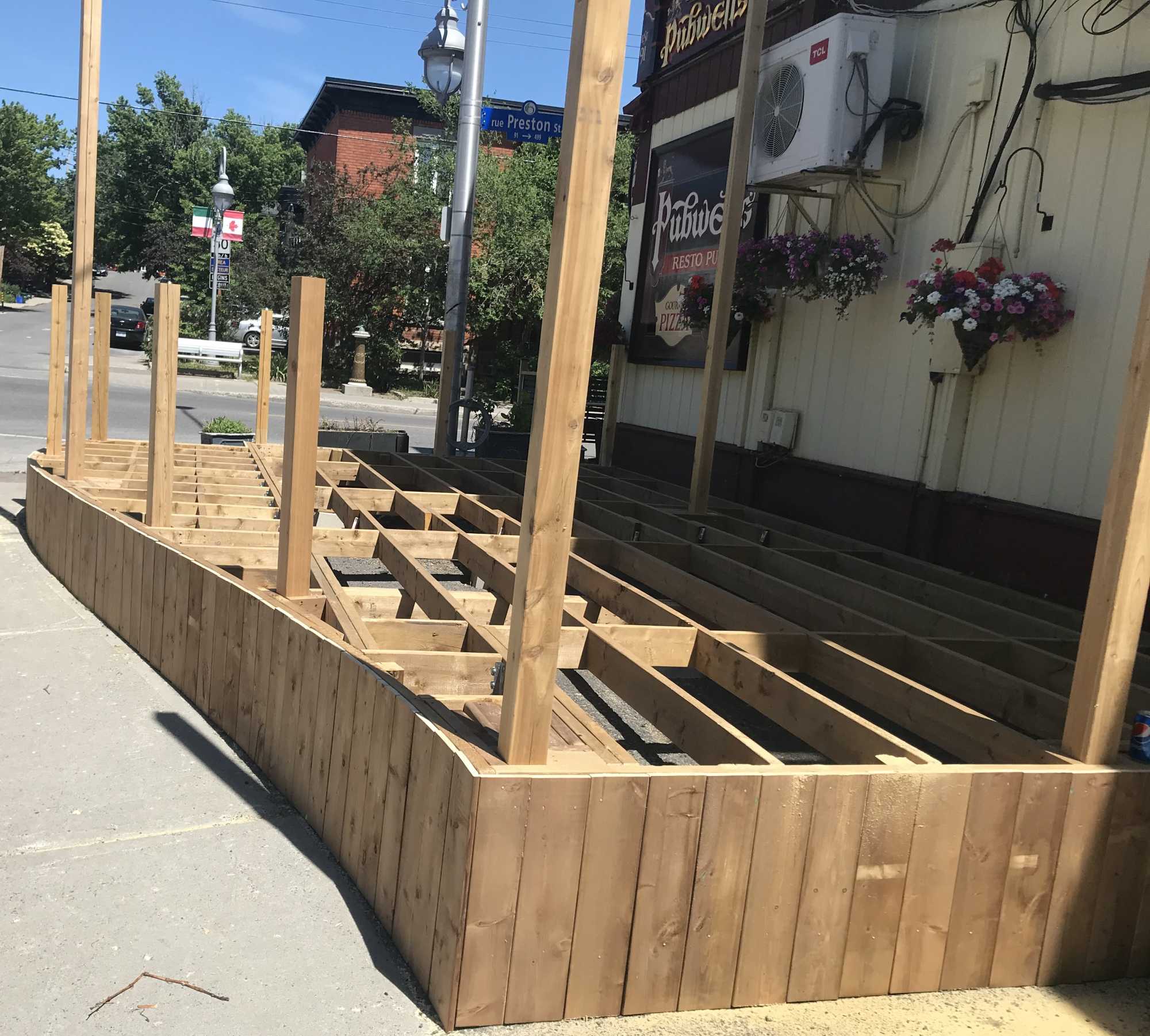This deck we built for Pubwell’s which is located in Little Italy on Preston Street. This was built during the pandemic when the City of Ottawa was trying to come up with creative ideas to get small businesses in the service industry to be able to be profitable…..and this one one of them.